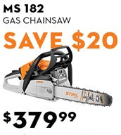 The MS 182 is a powerful, easy-to-use homeowner chainsaw that gives you performance you can depend on. This chainsaw is equipped with toolless fuel and oil caps with retainers, offering a simple and convenient method to tighten and loosen oil caps without the use of tools. Featuring a Master Control Lever™ and an anti-vibration system, the MS 182 is designed to reduce fatigue while offering more control and maneuverability, making it the ideal tool for woodcutting tasks around the home.